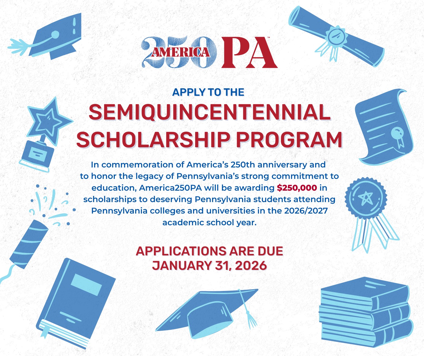 Pennsylvania high school seniors planning to attend an accredited Pennsylvania college or university for the 2026–2027 academic year are eligible to apply for scholarships of $10,000 each. Apply HERE. Historical Marker Nominations Now Open