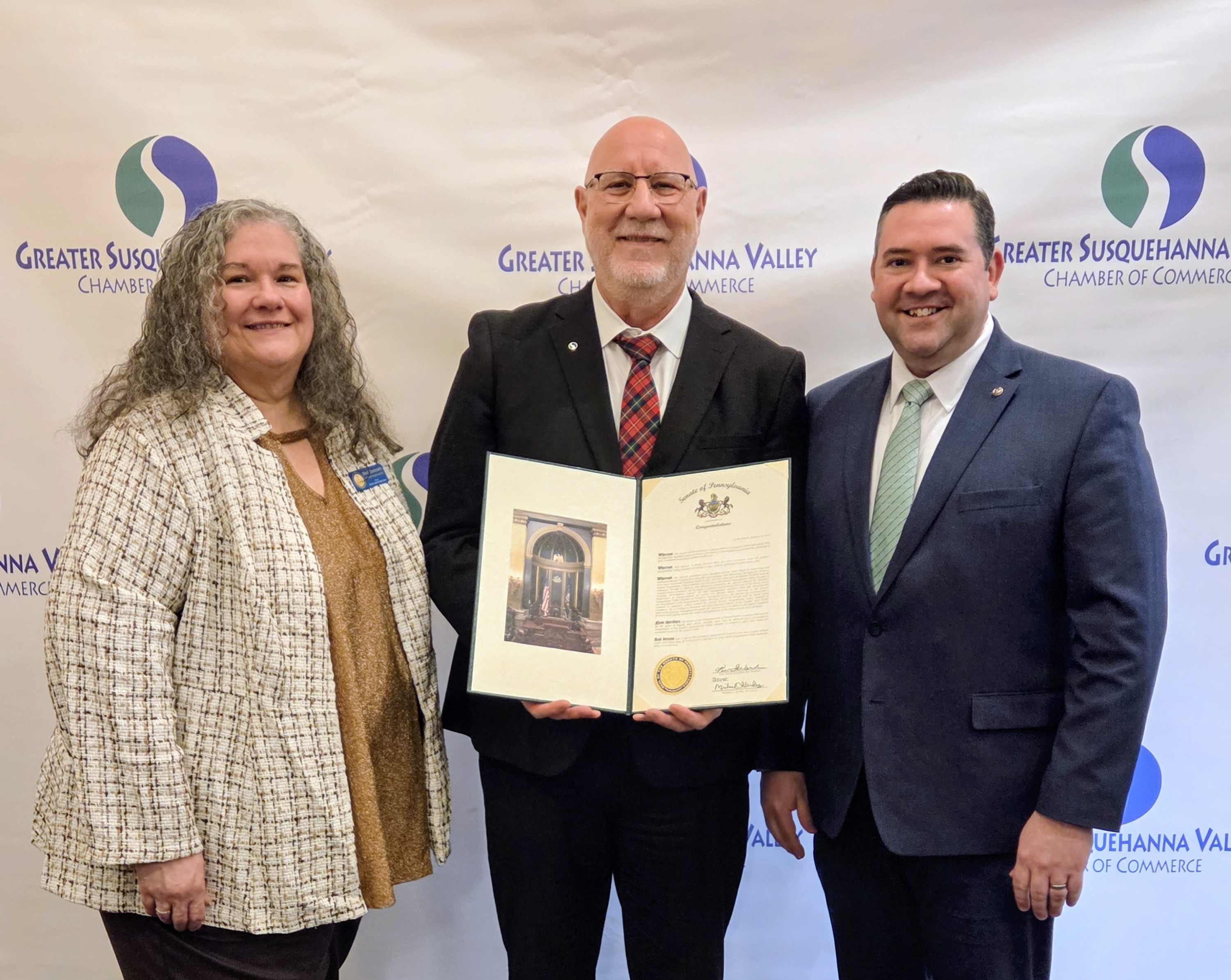 Bob Garrett was honored recently for his retirement from the Greater Susquehanna Valley Chamber of Commerce following nearly 45 years of dedicated service there, including 12 years as president and CEO. My district director, Matt Wise, was on hand for the celebration and presented him with a Senate Citation, along with Wendy Dombroski from Sen. Culver’s office. Congratulations, Bob! Wishing you all the best in your next chapter. Happy Anniversary
